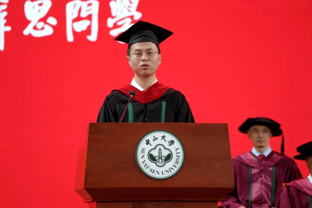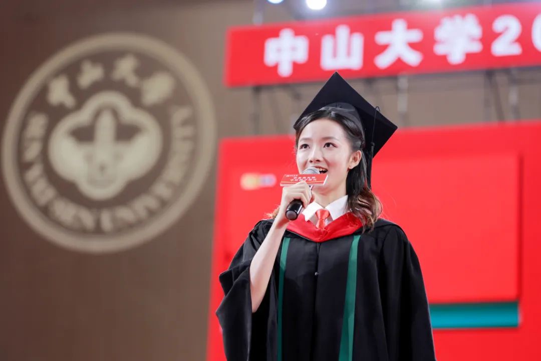 研究生毕业生代表--中国语言文学系2020级硕士研究生毕业生张玉子分享了求学中大带来的蜕变。这种蜕变,来自母校对我们学习力、思想力和行动力的扎实培养。丰富的学术资源和高水平的科研平台,使一次实验操作,一场调研访谈,一次伏案深思,一场精彩展示,这些看似日常的具体学习行动,都引领着我们年轻一代学子的学术能力、学术作风、志向追求,与整个中国科研创新的高度,与建设创新型国家的速度紧密相连。学思践悟能力的不断提升,也蕴含着粤港澳大湾区“闯”的精神、“创”的劲头、“干”的作风。