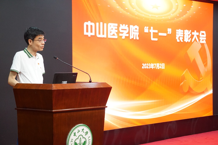 院长匡铭同志为大会致辞。他代表学院对即将接受表彰的同志表示热烈的祝贺,希望受表彰的优秀个人和先进集体珍惜荣誉,再接再厉,为学院高质量发展再立新功。同时,深刻阐述了为弘扬百年中大精神,传承百年中大红色基因,如何坚持党的正确领导,运用党的创新理论统一思想、统一行动,如何学思用贯通,知信行统一。他勉励全体党员,要深入开展学习贯彻习近平新时代中国特色社会主义思想主题教育,真正做到以学铸魂,以学增智、以学正风,以学促干,全身心投入为党育人为国育才,培养党和人民信赖的好医生,培养未来优秀的生物医学科学家,培养未来杰出的法医学家。