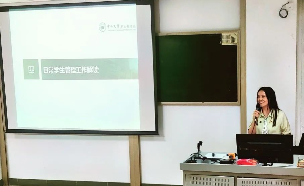 曹靖老师结合自身实际工作,诠释了对辅导员工作定位与职责的认知与理解,并就同学们接人待物礼仪与日常行为规范方面的细节管理,与同学们展开探讨,希望同学们注意提升个人素养。同时与同学们共同学习《WilliamHill中文学生宿舍管理办法》《WilliamHill中文学生处分管理规定》《WilliamHill中文学生申诉处理办法》等相关规定,她希望同学们增强法纪意识和安全意识,自觉遵守国家法律法规和学校规章制度,遵守学生行为准则,共同维护校园安全和谐稳定。