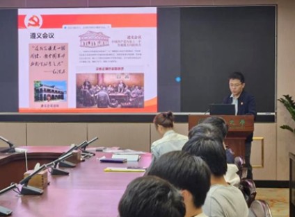 图:党委副书记陈保瑜为参会学生讲授专题党课