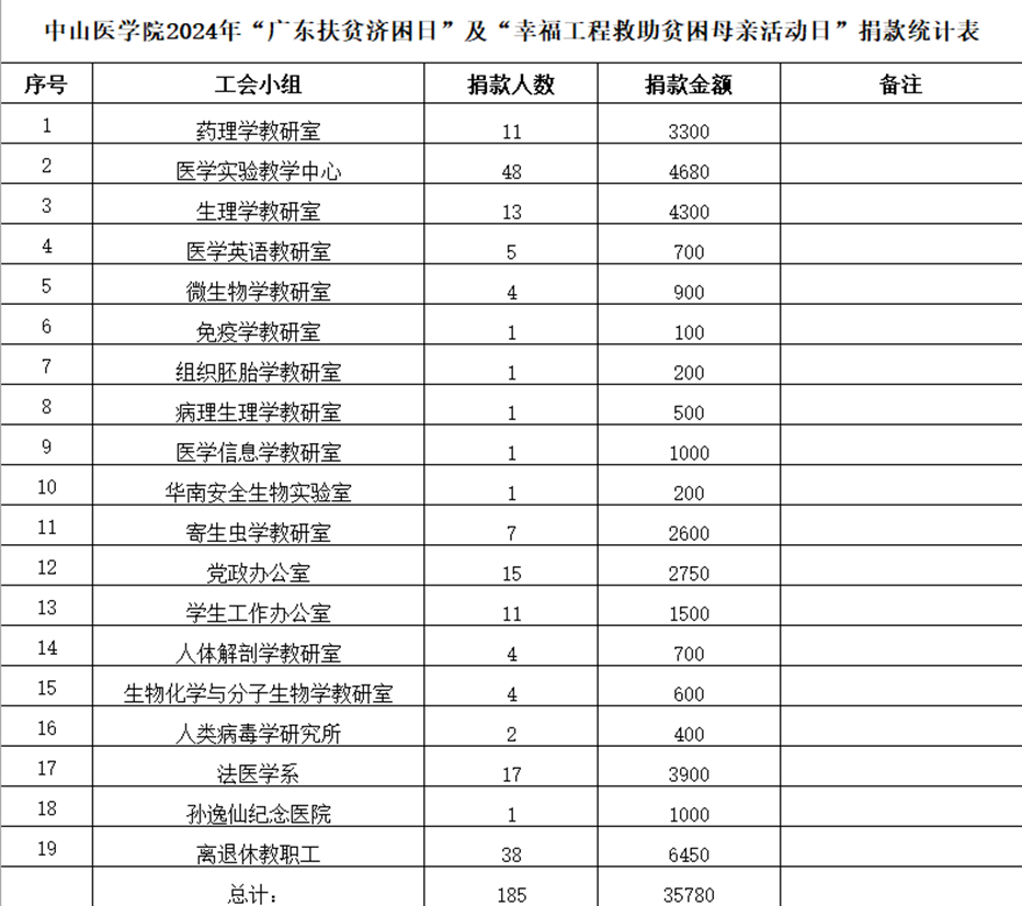 7月1日,学院党委及学院分工会积极响应学校号召,发动全院教职工向广东扶贫济困日活动捐款,我院教工踊跃捐款。截止到7月12日,共捐款35780元人民币。我院已通过学校工会将爱心捐款转交至广东省扶贫基金会指定账户。