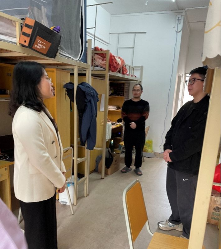 图:王淑珍副院长,研究生辅导员张裕荣老师、黄二文副教授,长学制班主任朱毅琼老师走访北校园学生宿舍