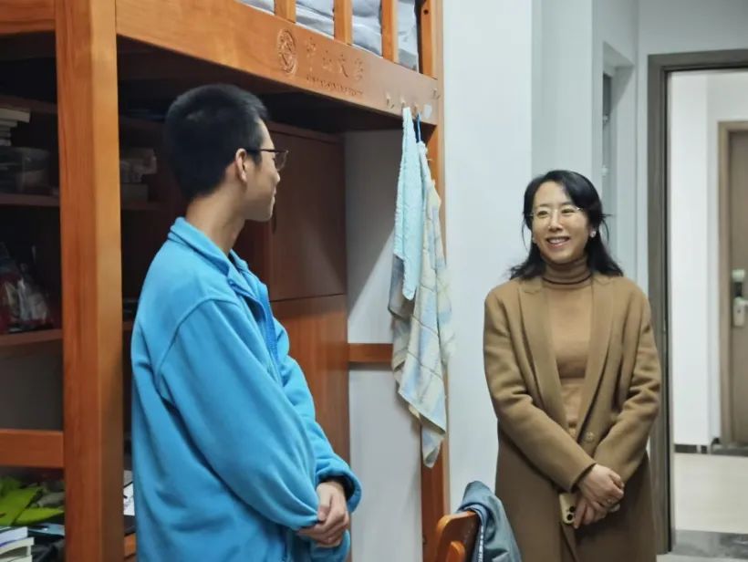 在本科生宿舍中,老师们全面了解了同学们的学习、生活动态,强调身心健康是追求学术梦想的基石,并针对同学们的日常规划、时间管理给出了科学的建议。