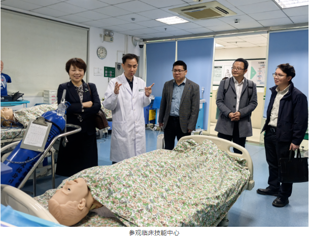 随后,来访嘉宾参观了临床技能中心及医科公共平台,期间郭开华院长助理和陈少锐副主任为他们进行了详尽的讲解,介绍了临床技能中心设施设备的功能用途,还分享了相关教学实践中的案例和经验,让来访嘉宾对我院的教学实践环境有了更直观、更全面的了解。