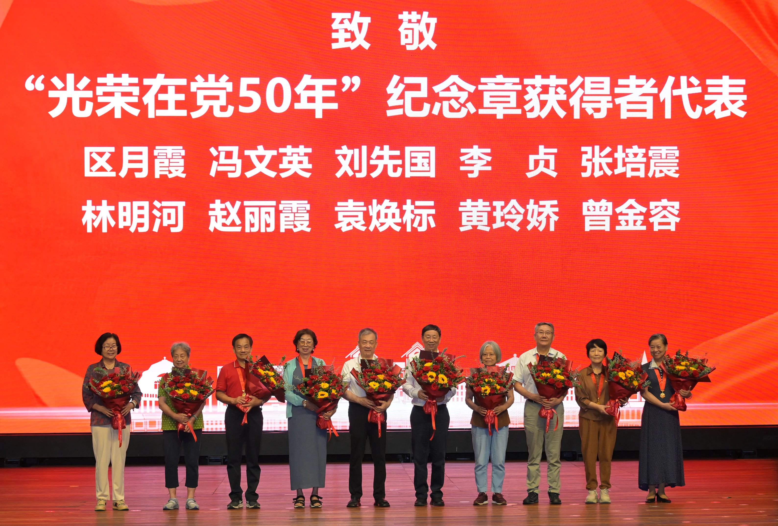 获得纪念章的老党员代表结合自身经历发表了“光荣在党50年”感言,既表达了对党的热爱,永葆初心,同时也愿年轻党员传承精神,在新征程发光发热。
