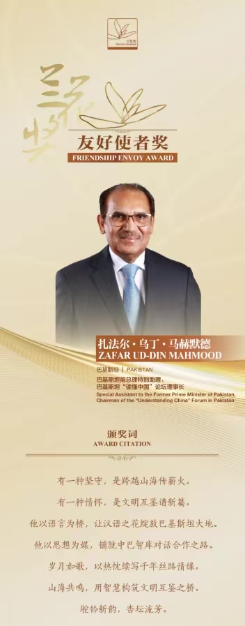 近日,第二届兰花奖颁奖典礼在北京举行,曾任巴基斯坦总理特别助理的中山医1977级国际校友、巴基斯坦“读懂中国”论坛理事长扎法尔·乌丁·马赫默德,凭借在中巴文化交流领域的卓越贡献荣获“友好使者奖”。