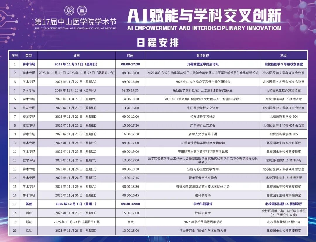 本届学术节将汇聚国内外顶尖学者、行业领军人物与优秀青年科研人才,共同分享医学领域前沿发现,探讨AI赋能医学研究的新范式与学科交叉创新的新路径。