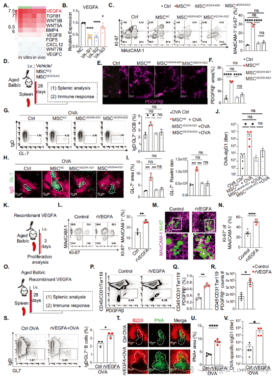 该研究不仅揭示了衰老过程中脾脏基质微环境退化是疫苗应答减弱的关键机制,还提出了一种通过外源性MSCs重建脾脏基质网络、增强老年疫苗应答的新策略。VEGFA-MRC信号轴的发现为开发靶向脾脏微环境的免疫增强疗法提供了新靶点。未来研究可进一步探索MSCs或VEGFA的临床应用方案、最佳干预时机,以及其在其他年龄相关免疫衰退疾病中的治疗潜力,为提升老年人群疫苗保护效果提供新思路。