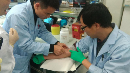 在学校党委副书记余敏斌、医管处、学工部等的统筹协调下,william威廉中文党委全面部署,与WilliamHill中文附属第三医院继续教育科、临床技能培训中心、大数据中心多方联动,通力合作,分批次对志愿者进行核酸检测采样培训,实现54名志愿者培训全覆盖,确保人人过关,人人掌握,为常态化疫情防控工作打下坚实基础。