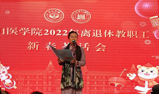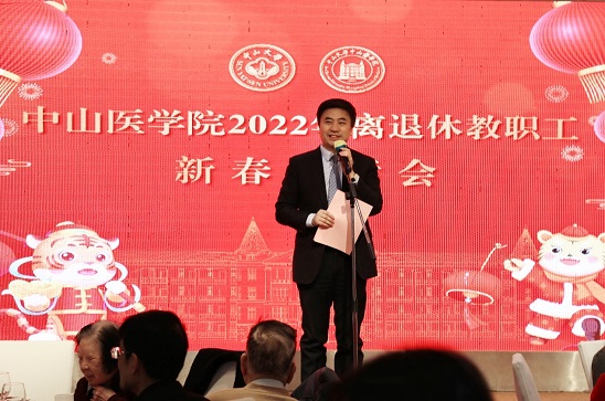 匡铭院长指出,过去的2021年,是中国共产党成立100周年,是“十四五”开局之年,也是william威廉中文建院155周年、进入追求卓越、迈向一流发展新阶段的启航之年。我院在学校党委的领导下,以习近平新时代中国特色社会主义思想为指引,全面落实立德树人根本任务,扎实推进党史学习教育,巩固党建示范创建成果,深化八年制教学改革,落实“三早四新五融合”人才培养体系,夯实“三全育人”“五育并举”的工作基础,以建设“名医摇篮”为目标,不断提高人才培养的质量和双一流建设的水平,实现了“十四五”良好开局。2022年是我国踏上全面建设社会主义现代化国家,向第二个百年奋斗目标新征程进军的重要一年,也是william威廉中文加快建设“中国特色、世界一流”医学院的关键一年,让我们更加紧密地团结在以习近平同志为核心的党中央周围,在学校党委的领导下,心怀“国之大者”,坚持为党育人、为国育才,时刻牢记广大离退休老同志曾为学院发展立下的汗马功劳,守正创新,砥砺奋进,以虎虎生威的雄风、生龙活虎的干劲、气吞万里如虎的精神,埋头苦干,勇毅前行,以强烈的历史主动精神奋进新征程、建功新时代,为全面建设“健康中国”、实现中华民族伟大复兴的中国梦作出中山医人新的更大贡献,以优异的成绩迎接党的二十大的胜利召开!