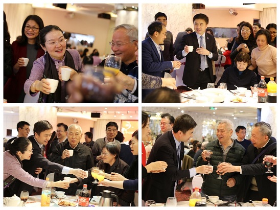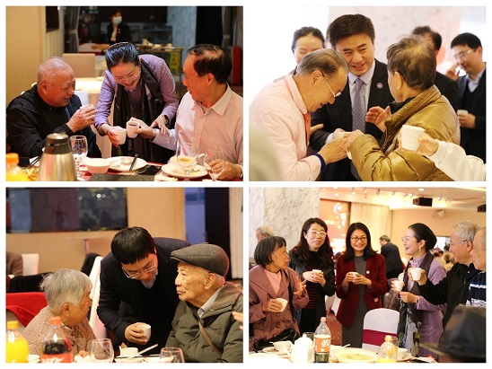 接着学院领导班子集体向每一桌的老同事们敬茶致意,大家共品香茗、畅谈人生,重温师生情谊,再叙校园往事。其乐融融、欢声笑语的情景,将尊师重道的学院文化传承表现得酣畅淋漓!