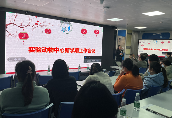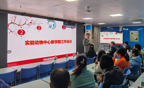 不负春光起好步,只争朝夕开好局。2月17日下午,实验动物中心在北校园医学科技楼3楼小型学术厅召开2022年新学期工作会议。中心领导及全体教职工80余人现场及线上参加会议(东校园教职工视频参会),我院钱军副院长、实验动物中心执行主任/支部书记蔡卫斌教授、副主任谭红梅教授、张小雷副教授出席会议。会议由谭红梅副主任主持。