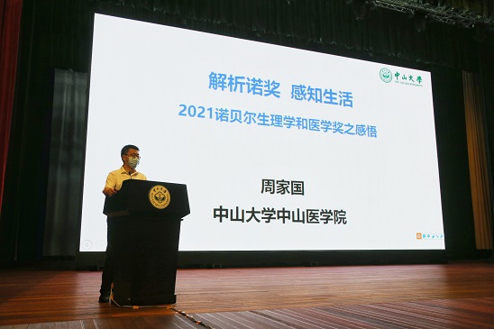 最后,周院长以本科生的角度为切入,解读2021年诺贝尔生理学或医学奖获得项目,帮助同学们了解什么是医学研究、怎么样从科研角度来看待问题。此次导学公开课引起了同学们对医学研究的好奇心,培养勇于创新和敢于创新的精神,刻苦钻研,严谨笃学,勇攀科学高峰。