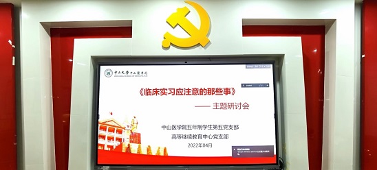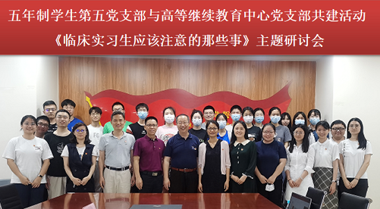 2022年4月27日,五年制学生第五党支部与高等继续教育中心党支部,在北校园科技楼722党员活动室共同开展支部共建活动,本期活动主题为临床实习应该注意的问题。