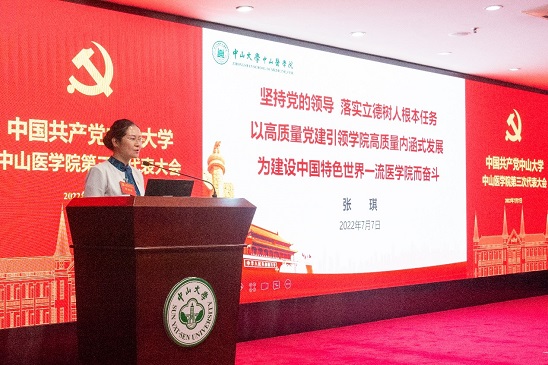 学院党委书记张琪同志代表上届党委作了题为《坚持党的领导 落实立德树人根本任务 以高质量党建引领学院高质量内涵式发展 为建设中国特色世界一流医学院而奋斗》的工作报告。报告回顾了自第二次党代会以来,全院广大党员、师生员工始终坚持以习近平新时代中国特色社会主义思想为指导,坚持党的全面领导,聚焦人才培养质量和双一流学科内涵建设,锐意进取、真抓实干,从严从实抓党建,凝心聚力谋发展,学院党的建设和事业发展迈出崭新步伐,新百年发展呈现良好态势,为向更高水平迈进奠定了坚实基础。报告提出了建设“中国特色世界一流医学院”的奋斗目标和重点任务,号召学院全体师生员工深刻领悟“两个确立”重要意义,坚决做到“两个维护”,立足“两个大局”,心怀“国之大者”, 以强烈的历史主动精神奋进新征程、建功新时代,改革创新,攻坚克难,聚力打造“名医摇篮”,以高质量党建引领学院事业高质量内涵式发展,向着迈入中国特色世界一流医学院的目标奋力前进,以更加优异的成绩迎接党的二十大胜利召开!
