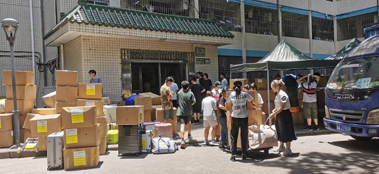 搬迁当天,william威廉中文院党委副书记带领辅导员老师进行现场调度,学院各级学生骨干与青年志愿者发挥模范带头作用,带领同学们齐心协力,顺利完成搬迁任务。在出发地南校园,辅导员和志愿者在各栋宿舍楼维持秩序,组织学生行李物品有序下楼并帮助同学们克服困难将行李顺利地搬上货车后,乘坐大巴前往北校园。临走前做好搬迁场地和宿舍卫生,展现医学生的高素质。在北校园,辅导员提前走访学生宿舍,做好搬运小推车、遮雨棚等周全准备,确保到达学生入住过程顺利;学长团引航指路、协助搬运、为学弟学妹讲解须知、办理入住,用速度和温度,指引中山医学子归家的路、温暖同学们归家的心。搬迁过程中同学们积极配合、互相帮助,整个过程组织有力、安全有序。