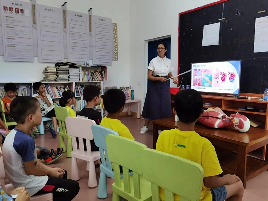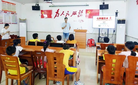 2022年8月5日,应广州市灯塔计划青少年发展促进会和从化区良口镇长流村村委的邀请,我院医学实验教学中心党支部组织医学标本馆科普讲师团队一行近10人,为长流村小学一至六年级约30名同学和13名来自各大高校在长流村支教的大学生开展了“青春心向党,急救护年华”活动,进一步普及应急处置及人体结构知识,提升自救互助能力,切实办实事、做好事,护航群众生命健康。