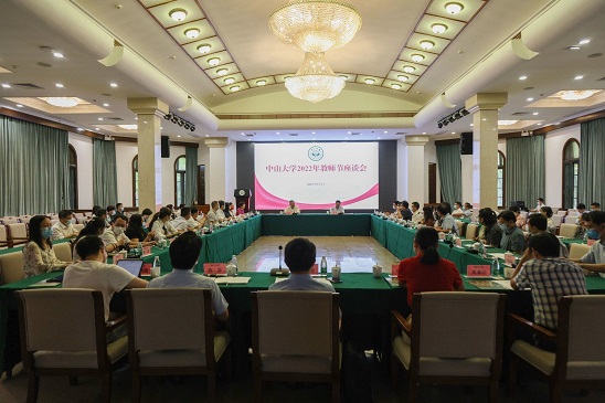 值此教师节与中秋节来临之际,9月9日上午,我校在广州校区南校园怀士堂举行2022年教师节座谈会。围绕“迎接党的二十大,培根铸魂育新人”这一主题,与会代表就心怀“国之大者”,勇担培育时代新人的历史使命展开了热烈讨论,并在会前集体观看了《习近平的教师情》专题片。校党委书记陈春声教授,校党委副书记、校长高松院士出席教师节座谈会。来自各院系、附属医院的30多位教师代表和学校相关职能部门负责人参加活动。会议由校党委副书记国亚萍主持。