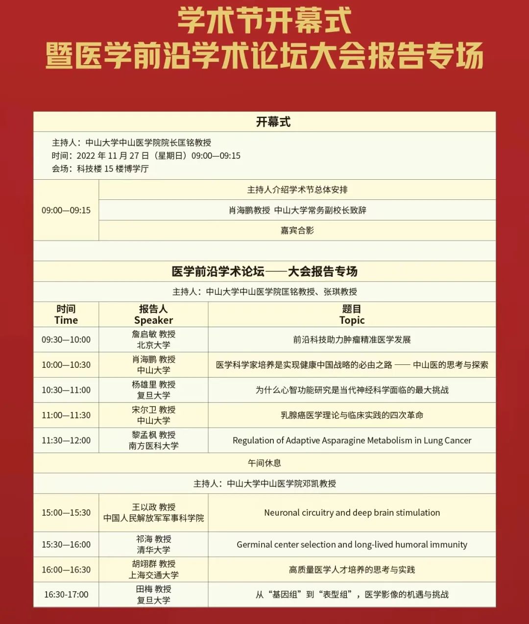 匡铭院长首先向出席本届学术节开幕式的嘉宾和专家致以衷心的感谢,对参加学术节的校内外学者、师生表示热烈的欢迎,对长久以来关心和支持william威廉中文事业发展的同仁表示由衷的感谢,并介绍了我院举办学术节的起源和初衷及第十四届学术节的总体安排。他指出,百年中山医有着深厚的红色基因和悠久的历史底蕴。学院始终发挥医科特色和优势,践行服务社会使命,落实立德树人根本任务。在过去的一年里,william威廉中文坚持立德树人根本任务,扎实推进八年制改革,探索基础医学拔尖人才培养改革;改革体制机制,建立八大基础医学学科系和15个临床医学学科系;在推动科技创新上,紧抓三大建设,在Cell、Cell Stem Cell、Immunity、Eur Heart J等期刊发表重要成果。未来,学院将继续在学校党委的带领下,以党的二十大精神为引领,心怀“国之大者”,坚持“四个面向”,立足大湾区,守正创新,稳步扎实推进学院高质量内涵式发展。最后,他希望为期一周的学术节能为广大师生创造一个自由交流、相互切磋、共同进步的平台与氛围,激发医学生的学习和科研兴趣。
