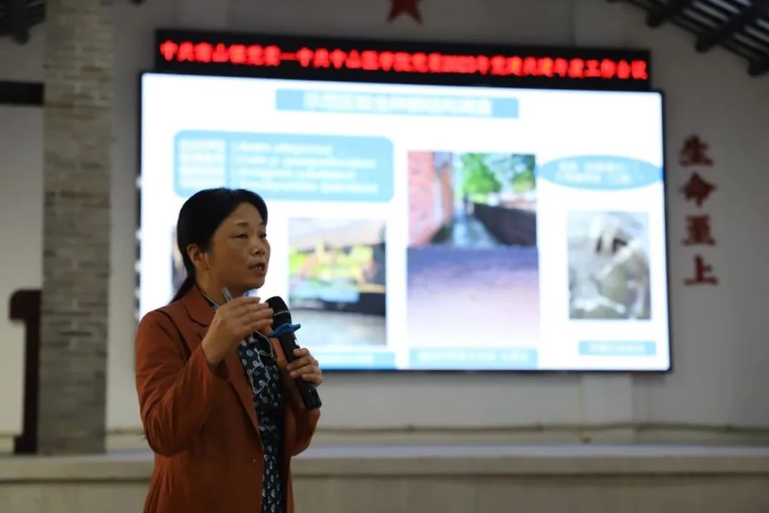 随后,我院病原生物学与生物安全系郑小英教授介绍了“无蚊社区”建设进度。目前,我院科研团队率先在农村社区示范区,开展无蚊示范区的建设,已完成示范区蚊虫种群结构及孳生生态的初步调查;正推进无蚊社区为主题的研学课程开发,加强基层教育宣传,推广应用“以蚊控蚊”生态防制蚊媒病技术,进而改善人居环境,打造美丽乡村样本。