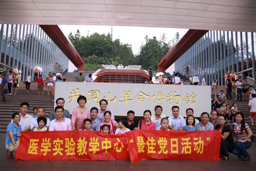 2012年7月28-31日,医学实验教学中心党支部全体党员、入党积极分子等,前往红色革命根据地井冈山参观学习,开展最佳党日活动。在井冈山,我们参观了黄洋界哨口、黄洋界纪念碑、井冈山革命博物馆、茨坪革命旧址、大井毛泽东旧居和朱德同志旧居,小井红军医院、红军造币厂等革命历史圣地,全体党员们认真听讲解、仔细看资料、真诚谈心得,回顾当年井冈山的故事,了解革命根据地的创立、发展以及斗争的历史。