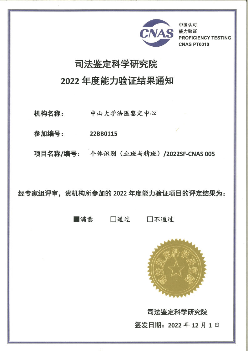 导航痕迹 WilliamHill中文法医鉴定中心 中心简介 能力验证结果 2022年度能力验证结果 扫描此二维码分享 2022年度能力验证结果 发布人:王碧玉 发布日期:2022-12-24