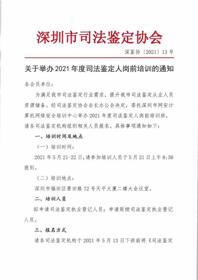 关于推迟2021年度司法鉴定人岗前培训班的通知