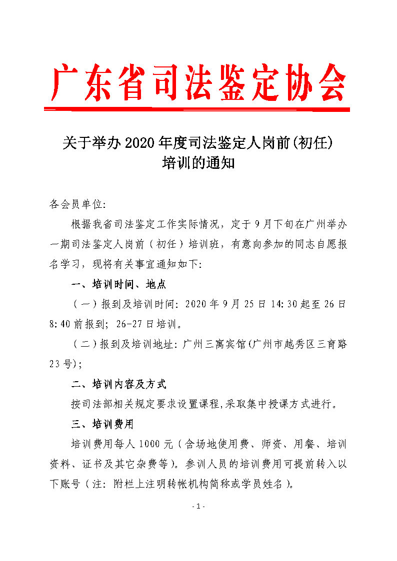 关于举办2020年度司法鉴定人岗前(初任)培训的通知