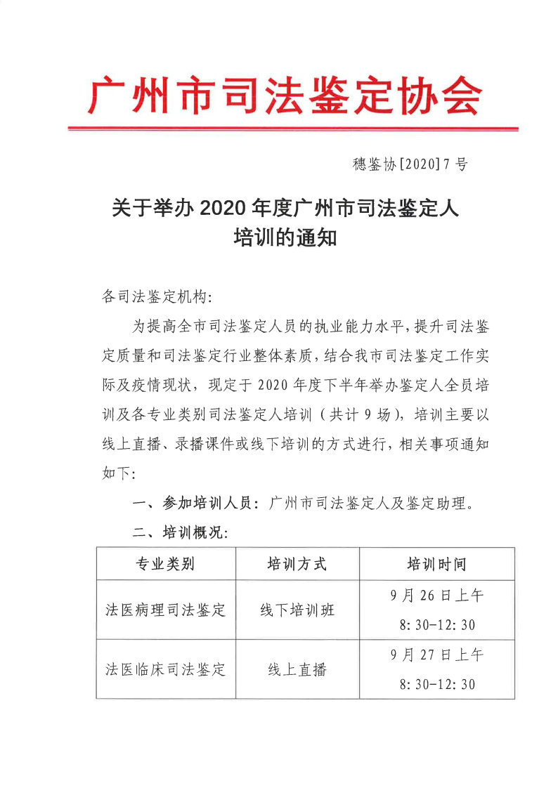 关于举办2020年度广州市司法鉴定人培训的通知