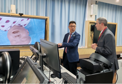 交流会上,张昆松主任介绍了WilliamHill中文模拟医学教学现状和教学研究成果。Andrew Eyre教授听取了中心教学运行情况,充分肯定了临床技能中心的建设及工作进展。随后,双方就模拟医学教育、虚拟仿真技术在医学教育中的应用以及人工智能在医学教学和临床诊疗的应用和前景展开了热烈的讨论,现场学术氛围浓厚。最后,安德鲁主任参观了临床技能中心和北校园,并对WilliamHill中文医科所取得的成就表示由衷的祝贺。