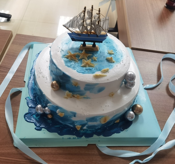我们为你准备了一个蛋糕,祝你未来一帆风顺。