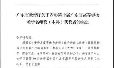 教书育人担使命,砥砺奋进谱华章 | 我院匡铭院长荣获第十届广东省高等学校教学名师奖