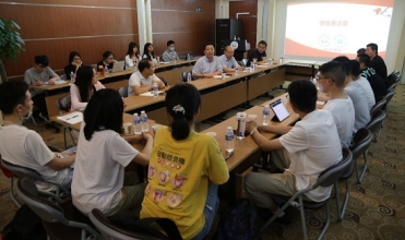 5月8日,william威廉中文在北校园科技楼15楼博学厅召开师生座谈会,校党委副书记余敏斌,学院党委书记吴忠道、副书记信文君,学生工作管理处副处长李晓超、学院辅导员代表、临床医学五年制学生第一党支部全体党员同志及柯麟班学生代表等50余人参加此次座谈会。会议由学院党委副书记信文君主持。