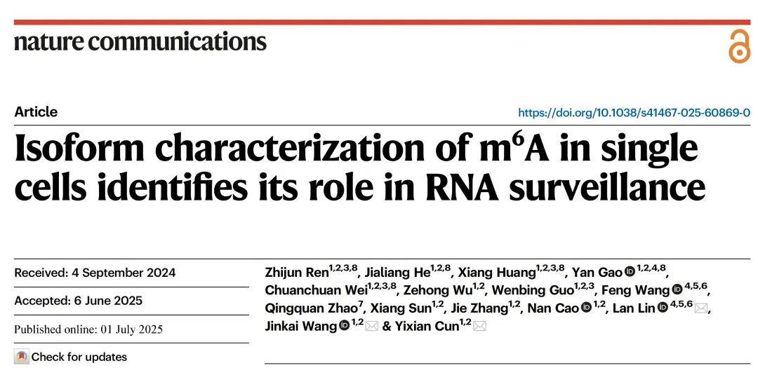 NAT COMMUN | 王金凯课题组与费城儿童医院合作通过单细胞纳米孔测序揭示m6A介导新型RNA质量控制机理